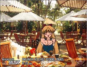 Narrator: In preparation for a hard day of shopping and leisure, Aino Minako prefers to "fuel up" at an exclusive, members-only restaurant in the middle of downtown Paris, Chez Pierre.